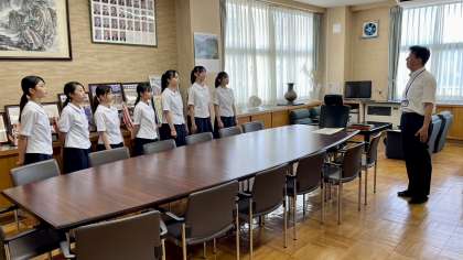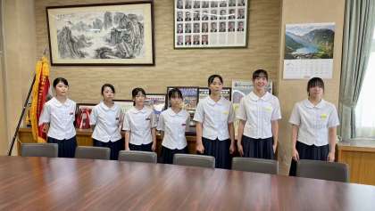 新体操部は、北信越大会で団体2位になり、全中(全国中学校体育大会)出場の切符をつかんだことを校長室に報告に来ました。