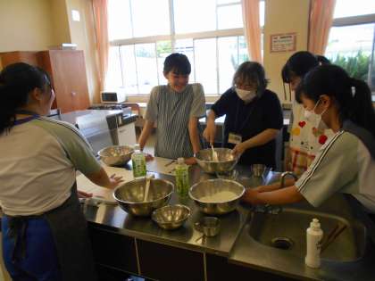 8月7日(月)の部活動・その3 公開日 2023/08/07 更新日 2023/08/07 部活動 8月7日(月) 9:00 調理室では、家庭科部が調理実習をしていました。 今日は、うどんと卵焼きです。 丹精を込めてこねられたうどんは、とてもおいしそうでした!