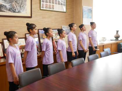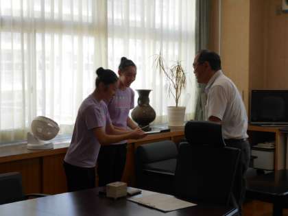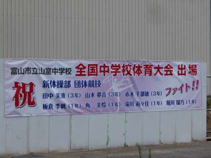 全国中学校新体操選手権大会・激励会 公開日 2023/08/09 更新日 2023/08/09 部活動 8月9日(水) 11:00 「第54回全国中学校新体操選手権大会」に出場する新体操部の激励会を校長室で行いました。 後援会、PTAからの激励金を校長先生から渡していただきました。 正門横には、後援会で横断幕もつくっていただきました。 たくさんの方の支えを励みに、19日(土)の大会で、素晴らしい演技を行えますように!