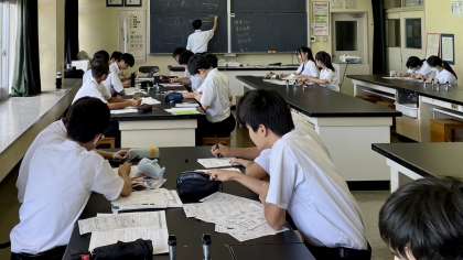 3年・学習会 公開日 2023/08/18 更新日 2023/08/18 3学年 8月18日(金) 10:00 3年生は、第3理科室で、「理科・学習会」を行いました。 今日は、「電流(磁界や陰極線等)」について復習しました。