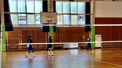 8月18日(金)の部活動・その8 公開日 2023/08/18 更新日 2023/08/18 部活動 8月18日(金) 15:30 今日の体育館最後の部活動は、バレーボール部です。 人数が少ないので、顧問も一緒に、いい汗をかいています!