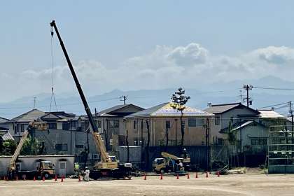 防球ネット・防砂ネット工事 公開日 2023/08/22 更新日 2023/08/22 山室中学校のページ 8月22日(火) 9:00 防球ネットの取り替え工事、防砂ネットの取り付け工事が、本格的に重機を導入して行われています。