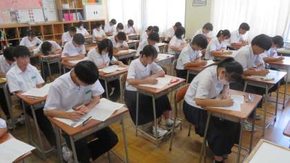 2年・確認テスト 公開日 2023/08/22 更新日 2023/08/22 2学年 8月22日(火) 2限 国語 2年の学年登校日は、「確認テスト」です。 (写真 上:2年1組 中:2年3組 下:2年5組) 手応えはどうだったでしょうか?