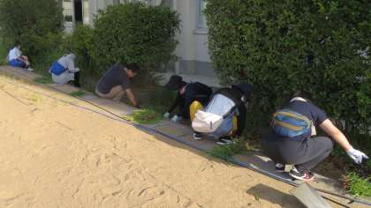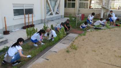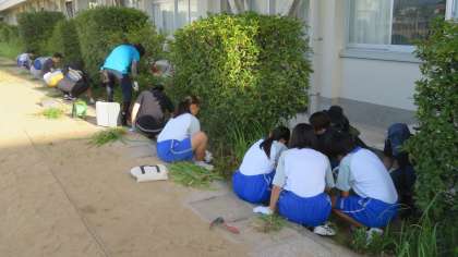 2年生は、東館(教室棟)の南側を中心に除草しました。