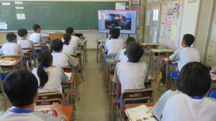 (写真 上:2年2組の英語 下:2年5組の国語)