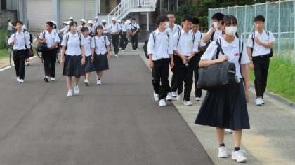 8月最終日の登校風景 公開日 2023/08/31 更新日 2023/08/31 山室中学校のページ 8月31日(木) 7:50 気温はすでに31度、天気はくもり。 今日はかなり暑くなりそうな予感がします。 8月最終日ですが、残暑を超えて、酷暑が続いています。 生徒が続々と元気に登校してきました。