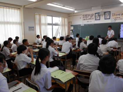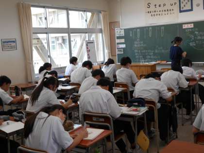 2年・授業風景・その1 公開日 2023/08/31 更新日 2023/08/31 2学年 8月31日(木) 6限 2年1組は、板書のまとめをもとに、学習内容の理解を深めています。 2年2組は、「14歳の挑戦」に向け、敬語の学習に励んでいます。 2年3組は、先生と生徒がリズミカルに学習内容を振り返っています。 (写真 上:2年1組 理科「光合成の仕組み」) (写真 中:2年2組 国語「敬語」) (写真 下:2年3組 英語「1年生の学習内容の振り返り」)