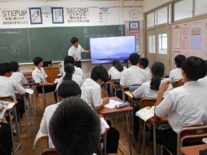 2年5組は、全員が、現在の桜島周辺の様子を真剣に見つめています。