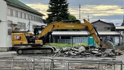 8月31日(木) 16:00 中庭のアスファルトがどんどんはがされています。