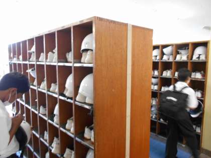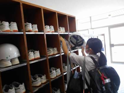 今朝から、自転車通学生は、ヘルメットを下足箱のスペースに収納することになりました。