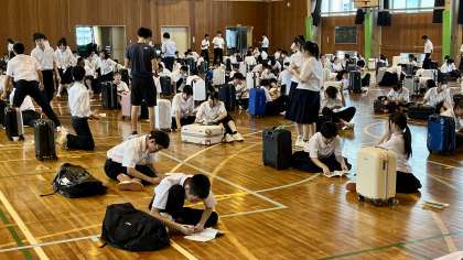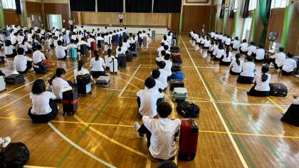 3年生は、体育館で学年集会を行い、修学旅行の荷物確認を行いました。