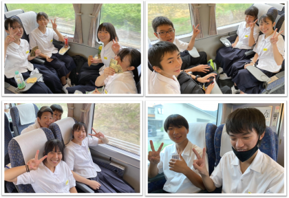3年・修学旅行・1日目・その7 公開日 2023/09/06 更新日 2023/09/06 3学年 9月6日(水) 9:00 サンダーバードの中では、おしゃべりしたり、ゲームをしたり、…… 楽しさいっぱいです!