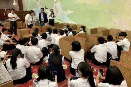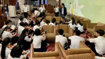 3年・修学旅行・1日目・その24 公開日 2023/09/06 更新日 2023/09/06 3学年 9月6日(水) 21:00 1Fロビーラウンジで班長会を行いました。 明日使用する旅行会社のスマートフォンの説明を聞いています。