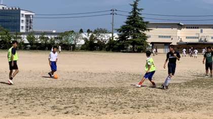 サッカー部は、興南中で新人大会に向けて合同練習をしています。