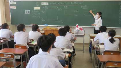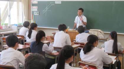 (写真 下:2年5組 英語の教育実習生・田近先生の授業)