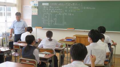 (写真 上:3年1組 数学「2次方程式の応用」)