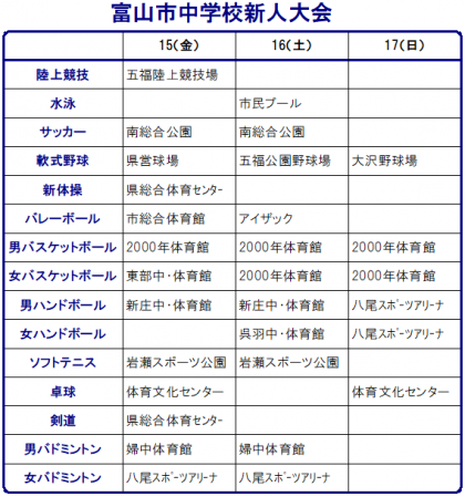 明日15日(金)から「富山市中学校新人大会」が始まります。