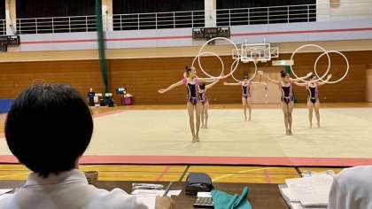 新人大会・1日目・その2 公開日 2023/09/15 更新日 2023/09/15 部活動 9月15日(金) 新体操・新人大会は、県総合体育センターで行われました。 山室・大泉・新庄合同チームは、団体フープで優勝しました。
