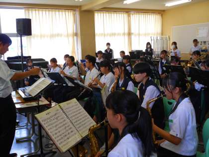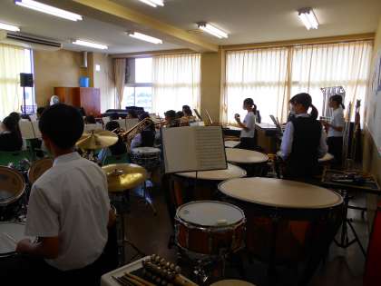 吹奏楽部が第2音楽室で活動をしています。