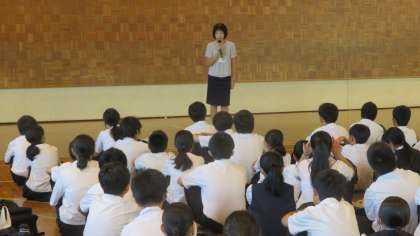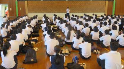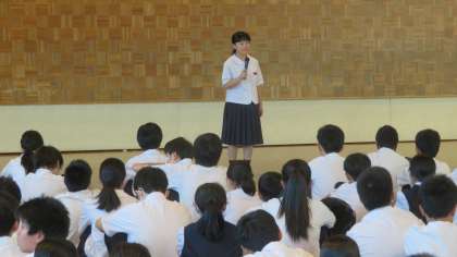 1年・高岡校外学習・その1 公開日 2023/09/19 更新日 2023/09/19 1学年 9月19日(火) 8:20 体育館で出発式を行いました。 (写真 上、中:生徒代表の挨拶 下:古木教頭のお話) このあと、活動のようすは、随時、ホームページで紹介します。 お楽しみに!