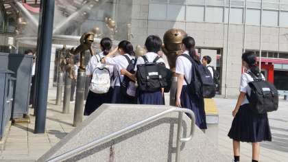 1年・高岡校外学習・その4 公開日 2023/09/19 更新日 2023/09/19 1学年 9月19日(火) 9:40 ウイングウイング高岡のドラえもんのキャラクターの像の前に生徒たちが集まっています。