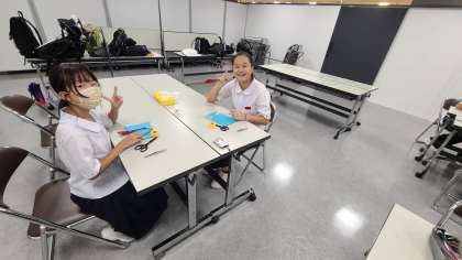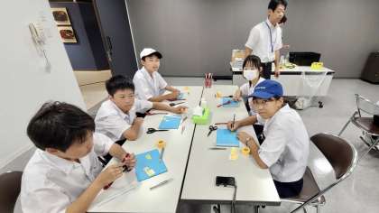 9月19日(火) 11:00 高岡地場産業センターで、朱塗りのスプーンに模様をデザインしています。