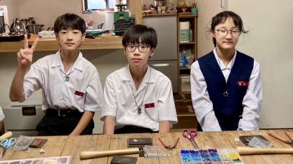 1年・高岡校外学習・その18 公開日 2023/09/19 更新日 2023/09/19 1学年 9月19日(火) 11:05 大寺幸八郎商店で、ついに作品が出来上がりました。 (写真 上:ブレスレット 中:キーホルダー 下:ネックレス) 仕上がりに大満足です!