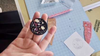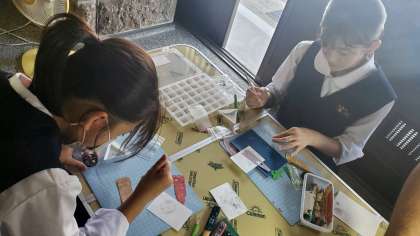 1年・高岡校外学習・その21 公開日 2023/09/19 更新日 2023/09/19 1学年 9月19日(火) 10:00 漆器くにもとで、漆器づくり体験をしています。 自分でデザインを考え、針を使って薄い貝殻を切ります。 試行錯誤しつつ楽しみながらつくることができました。
