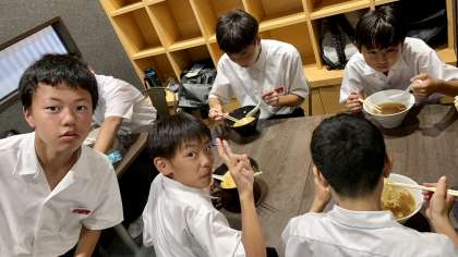 9月19日(火) 12:30 お食事中です。 班で食べると美味しいです!