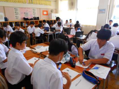 1年生は、昨日の高岡班別学習の新聞づくりをしています。