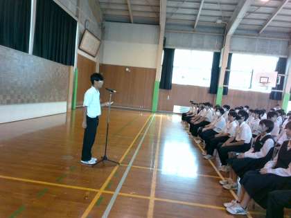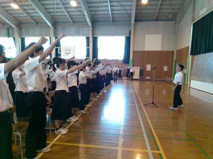 2年・「社会に学ぶ『14歳の挑戦』」・激励会 公開日 2023/09/21 更新日 2023/09/21 2学年 9月21日(木) 5限 2年生は来週(25日)から始まる「社会に学ぶ『14歳の挑戦』」に向けて、激励会を行いました。 実行委員が司会を務め、校長先生からは激励の言葉をいただきました。 最後に、2年生全員が一丸となって、かけ声で締めました。