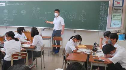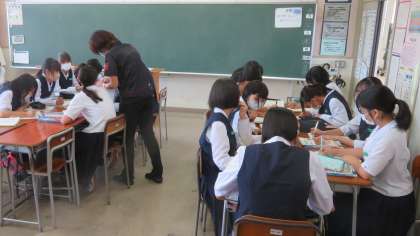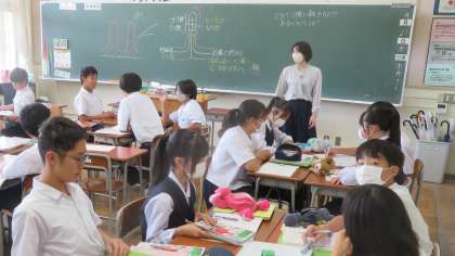 2年・授業風景 公開日 2023/09/21 更新日 2023/09/21 2学年 9月21日(木) 4限 9月も下旬になり、「学習の秋」です! (写真 上:2年1組 社会「九州地方の産業」) (写真 中:2年2,3組女子 体育 「ソフトボール・オリエンテーション」) (写真 下:2年4組 理科「小腸の働き」)