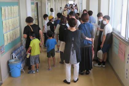 統一学校公開日・その1 公開日 2023/09/23 更新日 2023/09/23 統一学校公開日2023 9月23日(土) 5限 13:30〜14:20まで、授業公開を行いました。 (写真 上:1年廊下 中:2年廊下 下:3年廊下) たくさんの小学校6年生、保護者に方が参観されました。