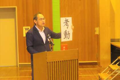 授業公開のあと、体育館に集合し、説明会を行いました。