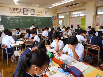 統一学校公開日・その4 公開日 2023/09/23 更新日 2023/09/23 統一学校公開日2023 9月23日(土) 5限 グループで協力して英文の読み取りを進めたり、課題をまとめたり しています。 黙々と頑張る2年生です。 (写真 上:2年1組 理科「酸素が細胞に運ばれるのはなぜだろう」) (写真 中:2年2組 英語「ホームステイの体験談を読み取ろう」) (写真 下:2年3組 社会 「九州地方にはどのような歴史と文化があるのだろう」)