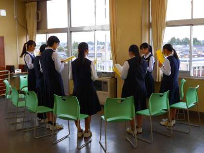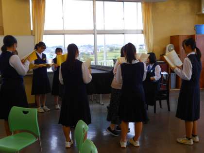 統一学校公開日・その7 公開日 2023/09/23 更新日 2023/09/23 統一学校公開日2023 9月23日(土) 5限 3年4組は、音楽の授業です。 合唱コンクールに向けて、クラス曲の「証」を練習中です。 このあと、ますます歌声に磨きがかかっていくことでしょう。 (写真 上:男声パート練習 下:女声パート練習)