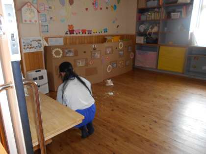 部屋ごとに、絵本を読んだり掃除をしたりして、園児と関わっていました。