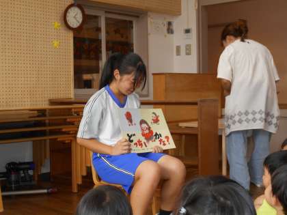 園児と同じ目線で話しをしたり、触れ合ったりするのに緊張する姿も見られましたが、「お姉ちゃん先生」と親しまれていました。