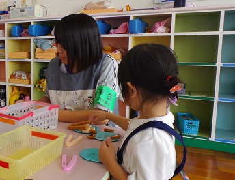 2年・14歳の挑戦・1日目・その31 公開日 2023/09/25 更新日 2023/09/25 2学年 9月25日(月) 午後 「社会に学ぶ『14歳の挑戦』」の活動を紹介します。 「幼保連携型認定こども園 堀川南保育園」での活動の様子です。 園児達とおもちゃを使って遊んでいます。