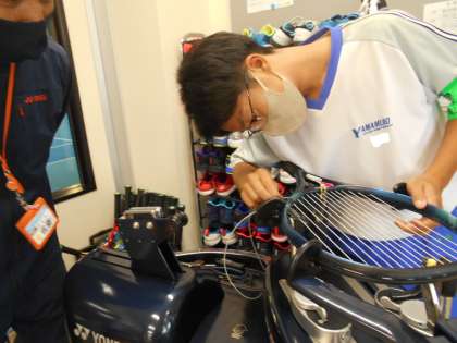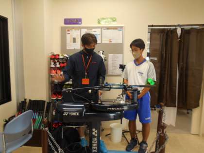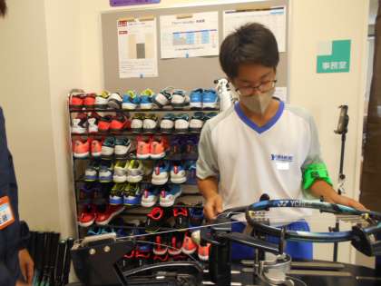 2年・14歳の挑戦・1日目・その44 公開日 2023/09/25 更新日 2023/09/25 2学年 9月25日(月) 14:00 「社会に学ぶ『14歳の挑戦』」の活動を紹介します。 「JSS インドアテニススクール 富山」での活動の様子です。 午前中はレッスン補助とコートの清掃を元気に頑張りました。 午後からは、専用の機械を使って、ストリングの張り方を教わっていました。 初めて触れる機械に苦戦し、何度も失敗しながら作業をしていました。