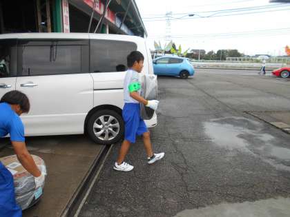 2年・14歳の挑戦・2日目・その2 公開日 2023/09/26 更新日 2023/09/26 2学年 9月26日(火) 10:00 「社会に学ぶ『14歳の挑戦』」の活動を紹介します。 「北陸車検」での活動の様子です。 タイヤを運んだりワイパーの交換をしています。 お客さんから「ありがとう」と言う声をかけてもらいうれしそうな表情をしていました。
