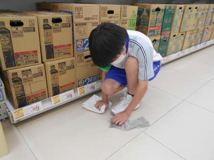 ヨーグルトを賞味期限が近いものを前にならべたり、床の隙間を雑巾できれいにしたりしています。