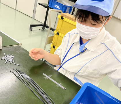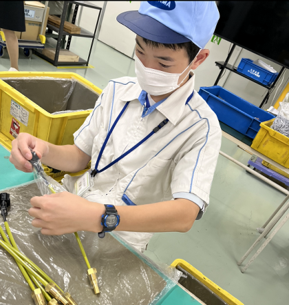 作業着を着て、帽子をかぶり、会社員の方といっしょに黙々と仕事に取り組んでいました。