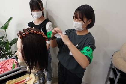 国家試験でも出題される、パーマの巻き方の練習中です。