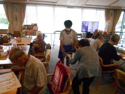 利用者の方のお世話をしたり、いっしょに歓談したりしています。