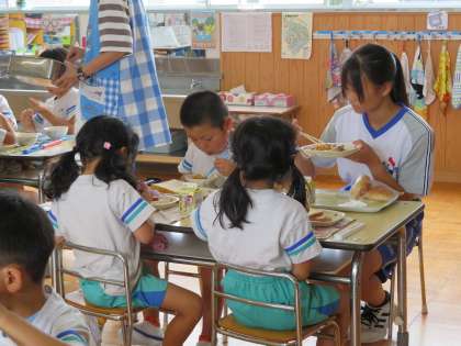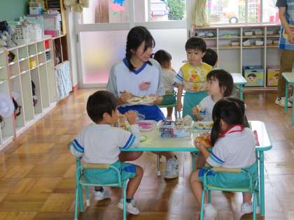 給食の時間も、準備から一緒に楽しくお話ししながら食べることまで、みんなお姉ちゃん先生も少しでもお役に立とうと奮闘中です。