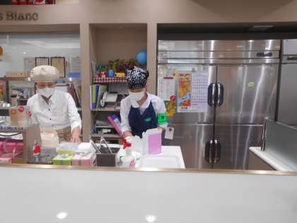 お菓子のラッピングやイベントのポップを書いたり、接客対応など、広範囲に経験させていただきました。
