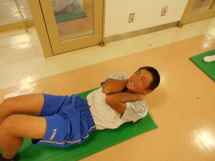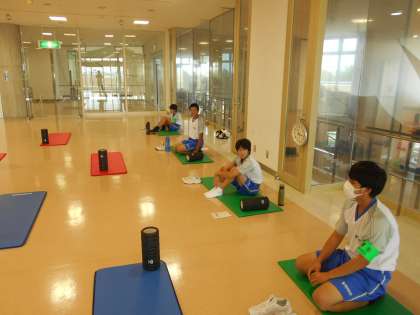 筋膜リリースというプログラムを利用者の方と体験しています。