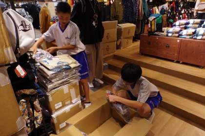 段ボールに入った服を種類別に運んだり、服の種類をさらに分ける仕事をしていました。