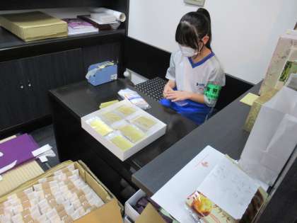 2年・14歳の挑戦・4日目・その16 公開日 2023/09/28 更新日 2023/09/28 2学年 9月28日(木) 11:00 「社会に学ぶ『14歳に挑戦』」の活動を紹介します。 「平安堂」での活動の様子です。 商品の包装紙をつくっているところです。 このあと、レジ打ちもしました。
